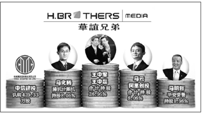 “三馬”合計認購資金為34.93億元,占據36億總募資額的97%。除了“三馬”之外,另有中信建投證券股份有限公司,認購了429.33萬(wàn)股,出資額為1.066億元。發(fā)行完成后,華誼兄弟控股股東王中軍、王中磊合計持股比例將由30.15%降至26.99%,仍持有控股權。騰訊持股上升為11166.80萬(wàn)股,持股比例為8.08%;馬云和阿里創(chuàng )投持有華誼兄弟同樣約為11166.80萬(wàn)股,與騰訊并列公司第二大股東;平安資管則以1.98%比例成為公司第三大股東。