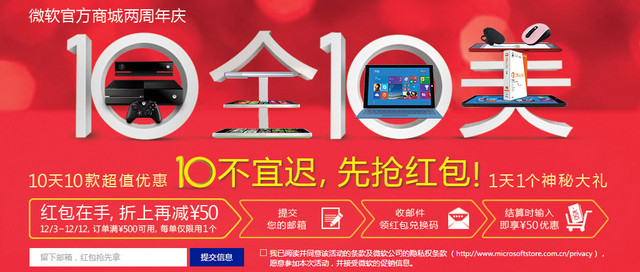 微軟中國官方商城迎來(lái)兩周年慶,從12月3日至12日,微軟中國官方商城將攜手天貓微軟中國官方旗艦店共同為用戶(hù)傾情奉上一場(chǎng)持續十天的感恩大狂歡,年度勁爆超值豪禮,不容錯過(guò)。