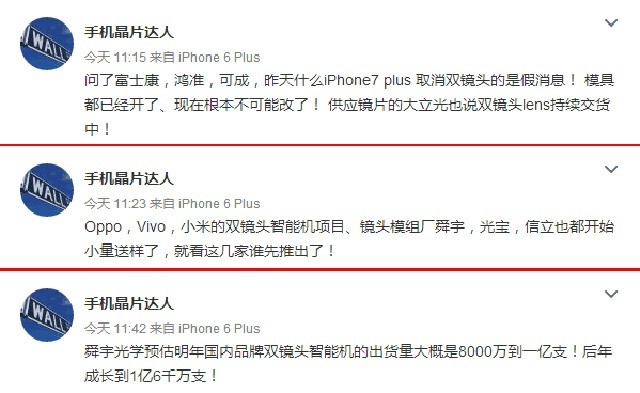 iPhone 7 Plus雙攝確認 國產(chǎn)廠(chǎng)商將跟進(jìn)(圖片來(lái)自weibo)